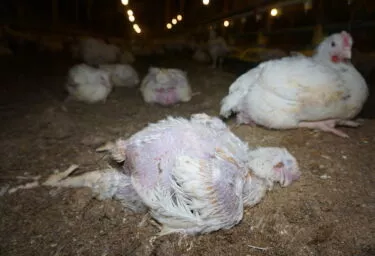 WHAT’S WRONG WITH THE CHICKEN INDUSTRY?: Over 800 million chickens a year are raised and slaughtered for their flesh to be stacked and sold on grocery store shelves in the UK. Much like animals suffering in U.S. farms, the vast majority of these animals will never step foot outside or feel the sun on their backs. They’re bred to grow to a massive size in a matter of a few weeks, and as a result, their bodies struggle to cope with the strain this puts on their joints and organs. Many die in agony before they even reach the slaughterhouse.